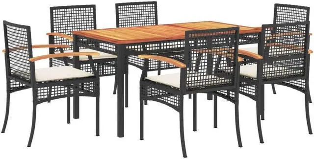 - Material: PE rattan, powder-coated steel, solid acacia wood with an oil finish