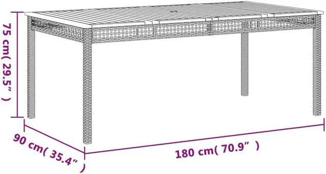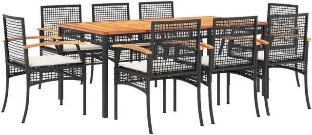 - Material: PE rattan, powder-coated steel, solid acacia wood with an oil finish