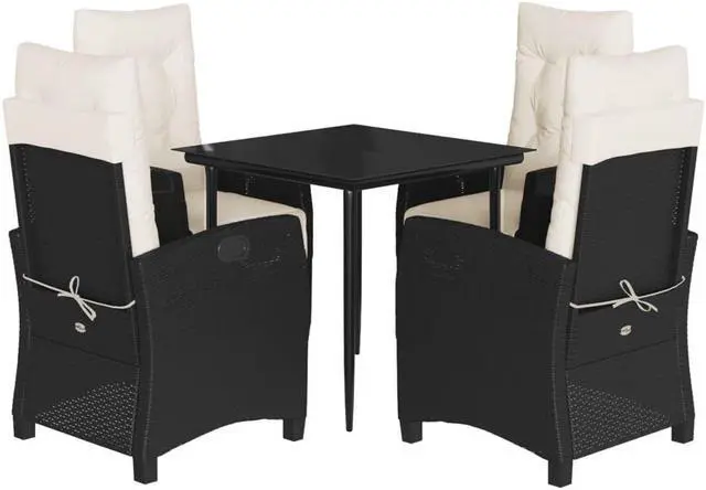 vidaXL Patio Dining Set with Cushions Garden Furniture 5 Piece Black Poly Rattan