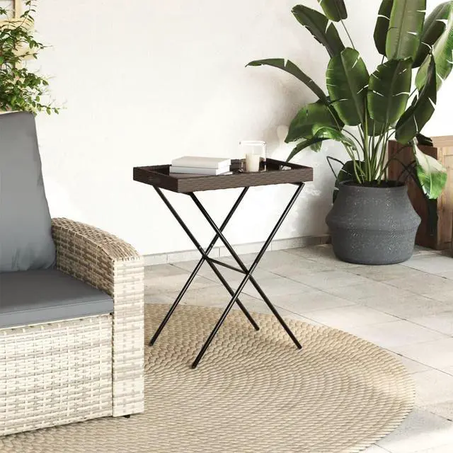 This classic poly rattan folding tray table, designed with clean and simple lines, is an excellent choice for your garden, patio, and other outdoor space.