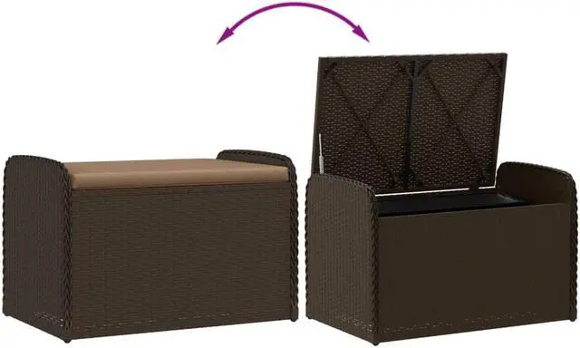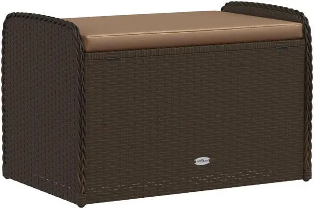 vidaXL Storage Bench with Cushion Outdoor Garden Furniture Brown Poly Rattan