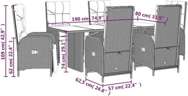vidaXL Patio Dining Set with Cushions Garden Furniture 7 Piece Gray Poly Rattan