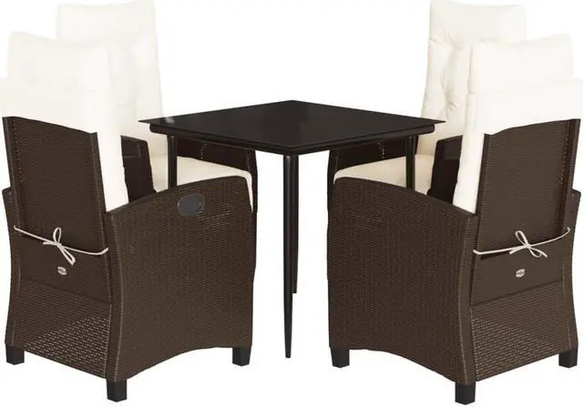 vidaXL Patio Dining Set with Cushions Garden Furniture 5 Piece Brown Poly Rattan