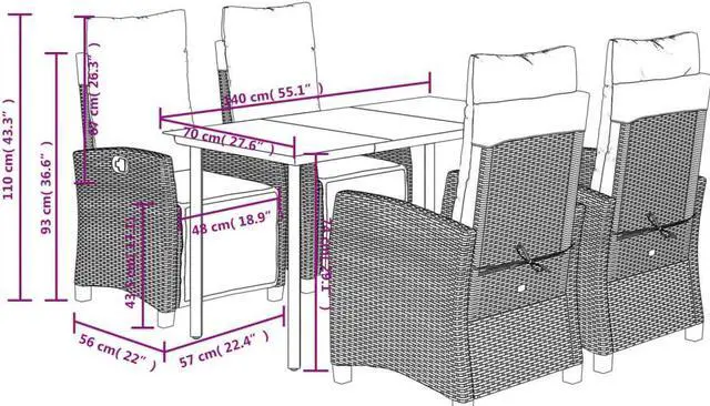 This 5-Piece Garden Dining Set is a brilliant mix of style and function, making it the ideal outdoor furniture for any patio, backyard, or balcony setting. The stunning rectangular tempered glass tabletop, framed by tough poly rattan and plush cushions, not only looks great but also guarantees comfort while you dine or chill in the sun perfect for gatherings with family and friends or just relaxing with a good read.