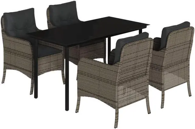 vidaXL Patio Dining Set with Cushions Garden Furniture 5 Piece Gray Poly Rattan