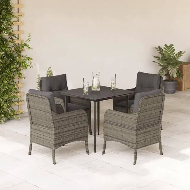 vidaXL Patio Dining Set with Cushions Garden Furniture 5 Piece Gray Poly Rattan