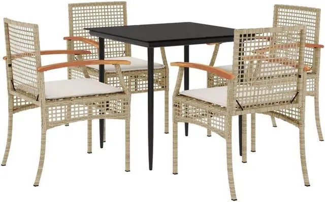 - Material: PE rattan, powder-coated steel, solid acacia wood with an oil finish