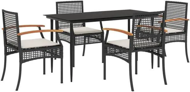 - Material: PE rattan, powder-coated steel, solid acacia wood with an oil finish