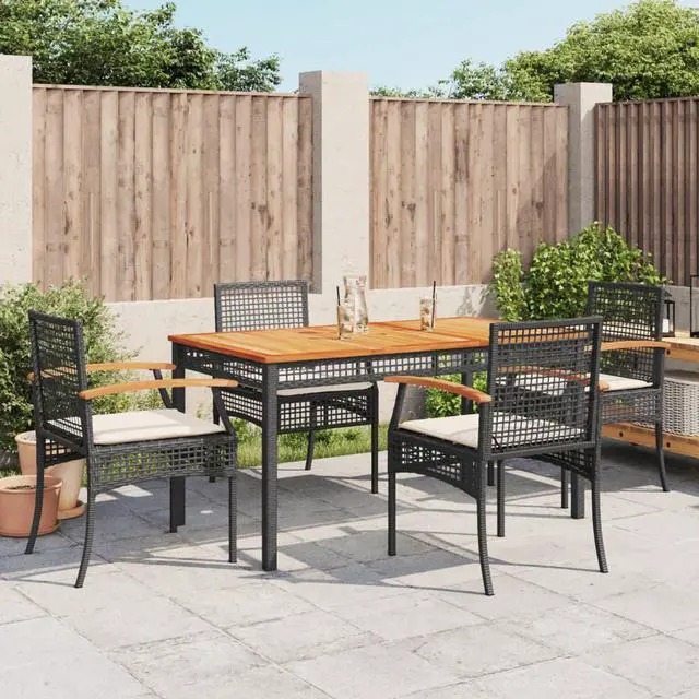 - Material: PE rattan, powder-coated steel, solid acacia wood with an oil finish