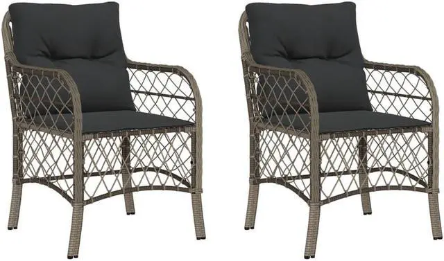 vidaXL Patio Chairs with Cushions Outdoor Furniture 2 Pcs Gray Poly Rattan