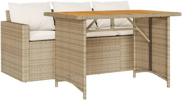 This 3-seater outdoor sofa set is designed to elevate your outdoor dining experience with its modern and stylish appearance. Crafted from high-quality synthetic poly rattan and solid acacia wood, this set features a beautiful brown and beige color scheme that effortlessly blends with any outdoor decor, be it on your patio, balcony, or garden. Its visually appealing look is complemented by well-padded cushions that are not only attractive but also provide optimal comfort for your guests.