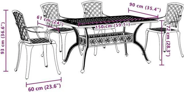 Sturdy and durable frame: The garde dining set, made of cast aluminum, is sturdy and durable enough to provide long-term service. The rust-resistant and weather-resistant material makes it ideal for outdoor use all year round.