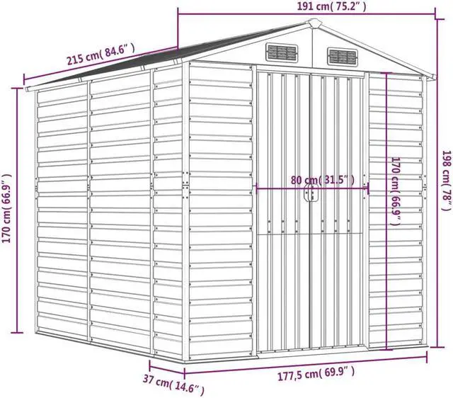 Robust material: The garden tool shed is made of galvanised steel, which prevents rusting and endures long-time use. Steel is an exceptionally hard and strong material. It offers sturdiness and stability. Galvanisation provides better protection against corrosion and is useful for products that'll be used outdoors as well as in harsh environments.