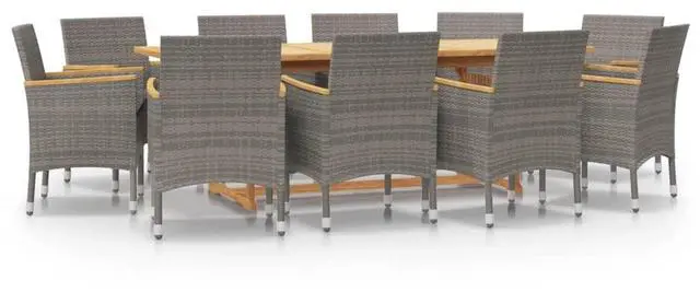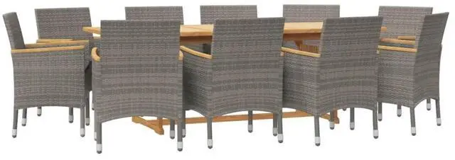 vidaXL Patio Dining Set 11 Piece with Cushions Gray Garden Outdoor Furniture