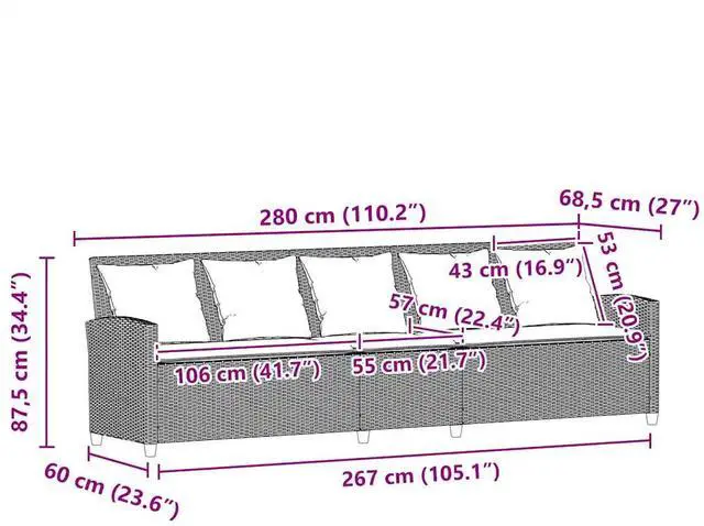 Overall dimensions: 110.2" x 27" x 34.4" (W x D x H)