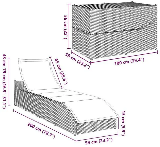 Space-saving foldable design: The head and foot sections of the garden sun lounger can be folded in the center to form a storage box with two separate upper and lower storage sections and equipped with 2 water-resistant bags for storing cushions. The inner bag can be securely attached to the seat with hook-and-loop fasteners, ensuring stability and preventing movement.