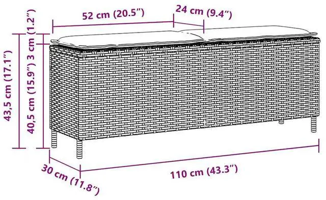 Overall dimensions: 43.3" x 11.8" x 15.9" (W x D x H)