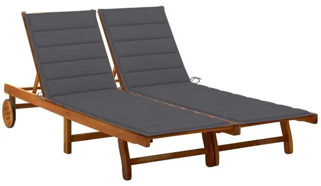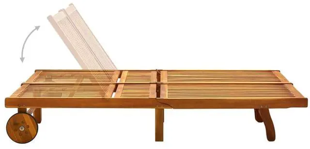 This outdoor sun lounger is made of solid acacia wood, making it sturdy and stable. The backrest and footrest are adjustable, and you can lock the lounger into the desired position. This garden sun lounger can be easily moved around the house with equipped 2 wheels. The cushion adds extra comfort for you while lounging.