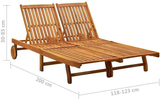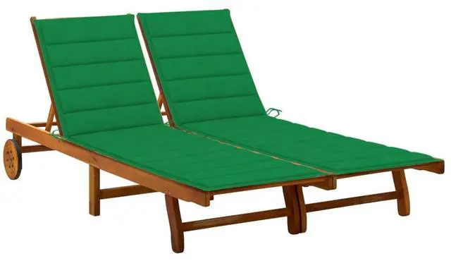 This outdoor sun lounger is made of solid acacia wood, making it sturdy and stable. The backrest and footrest are adjustable, and you can lock the lounger into the desired position. This garden sun lounger can be easily moved around the house with equipped 2 wheels. The cushion adds extra comfort for you while lounging.