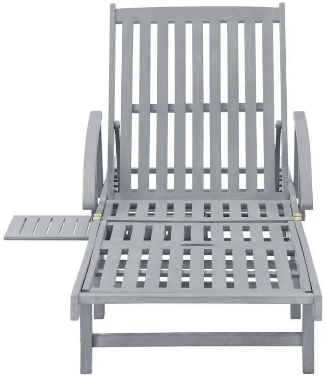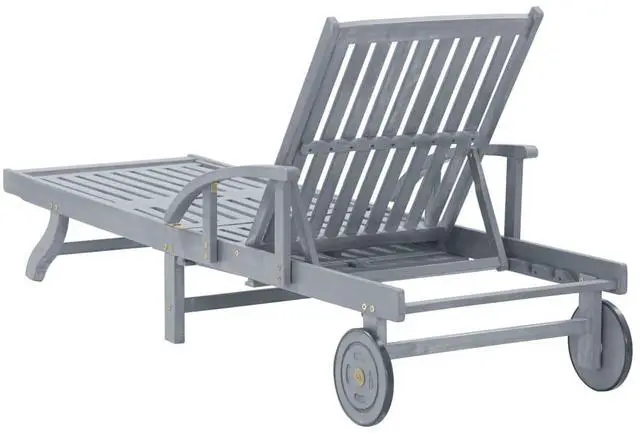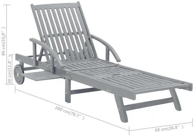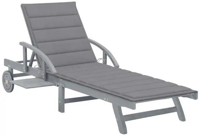 This outdoor sun lounger is made of solid acacia wood with a gray wash finishing, making it sturdy and stable. The backrest and footrest are adjustable, and you can lock the lounger into the desired position. This garden sun lounger can be easily moved around the house with equipped 2 wheels. The sunbed features a convenient pull-out table, to place your phone, sunglasses, drink and other small items. The cushion adds extra comfort for you while lounging. Each cushion features two sets of ropes so that you can fix it on the sun lounger tightly.