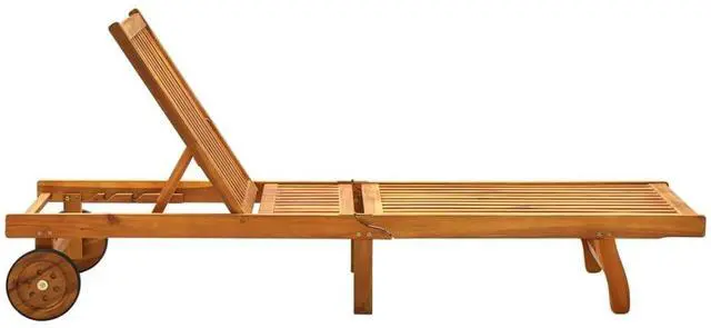 This outdoor sun lounger is made of solid acacia wood, making it sturdy and stable. The backrest and footrest are adjustable, and you can lock the lounger into the desired position. This garden sun lounger can be easily moved around the house with equipped 2 wheels. The sunbed features a convenient pull-out table, to place your phone, sunglasses, drink and other small items. The cushion adds extra comfort for you while lounging. Each cushion features two sets of ropes so that you can fix it on the sun lounger tightly.