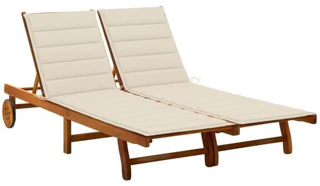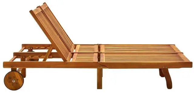 This outdoor sun lounger is made of solid acacia wood, making it sturdy and stable. The backrest and footrest are adjustable, and you can lock the lounger into the desired position. This garden sun lounger can be easily moved around the house with equipped 2 wheels. The cushion adds extra comfort for you while lounging.