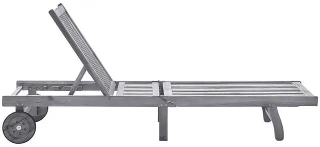 This outdoor sun lounger is made of solid acacia wood with a gray wash finishing, making it sturdy and stable. The backrest and footrest are adjustable, and you can lock the lounger into the desired position. This garden sun lounger can be easily moved around the house with equipped 2 wheels. The cushion adds extra comfort for you while lounging.