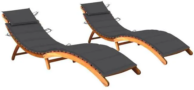 This cushioned sun lounger set is the perfect mix of comfort and style for outdoor chilling, with a contemporary design that spruces up any patio, balcony, or garden. Its solid acacia wood build is durable, and the sleek anthracite color matches all sorts of décor, making it a top choice for sunbathing or just hanging out outside.