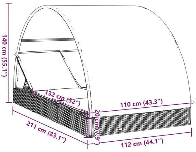 This 2-person patio sunbed with a round roof is ideal for relaxing near the swimming pool, on your balcony, or at the campsite during your holiday or leisure time.