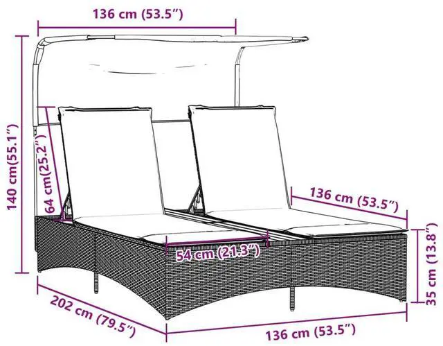 Dimensions with canopy: 53.5" x 79.5" x 55.1" (W x D x H)