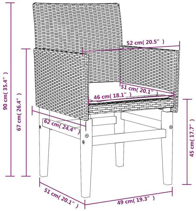 Material: PE rattan, solid acacia wood with a natural oil finish, powder-coated steel