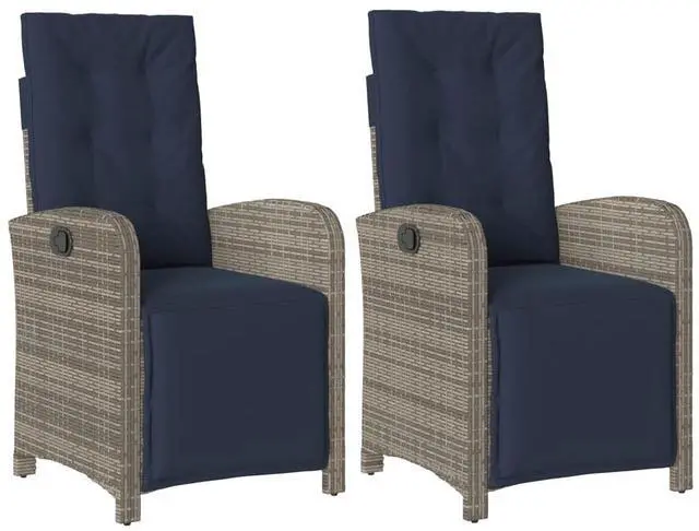 vidaXL Reclining Patio Chairs with Footrest Outdoor 2 Pcs Gray Poly Rattan