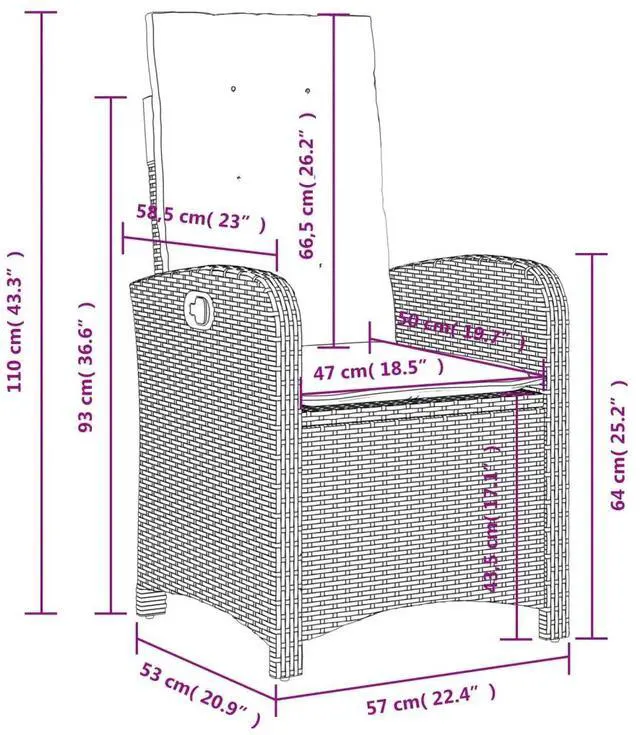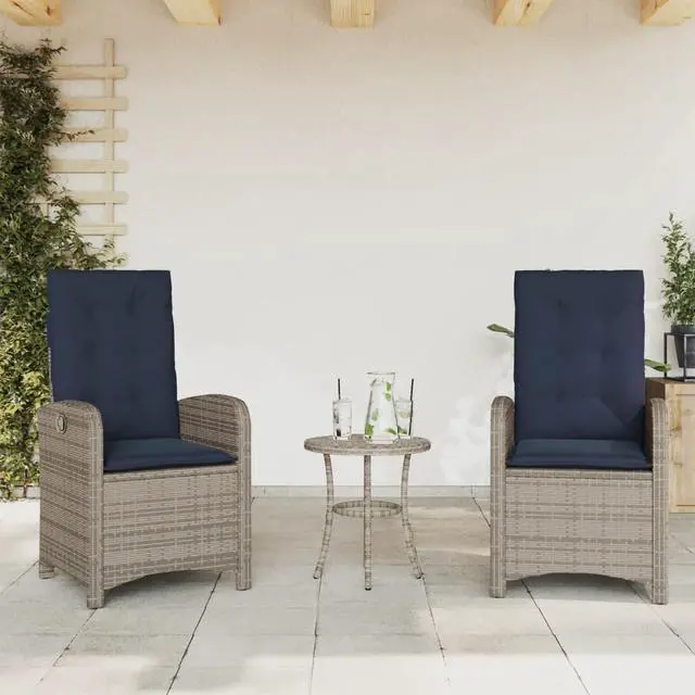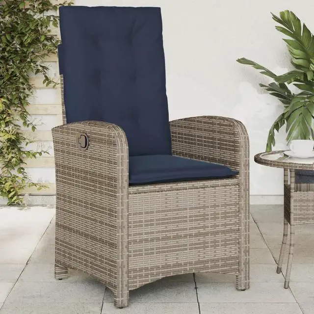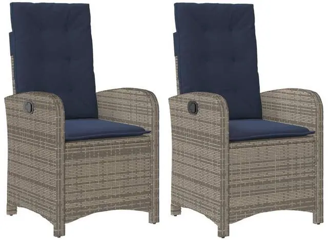 vidaXL Reclining Patio Chairs with Cushions Outdoor 2 Pcs Gray Poly Rattan
