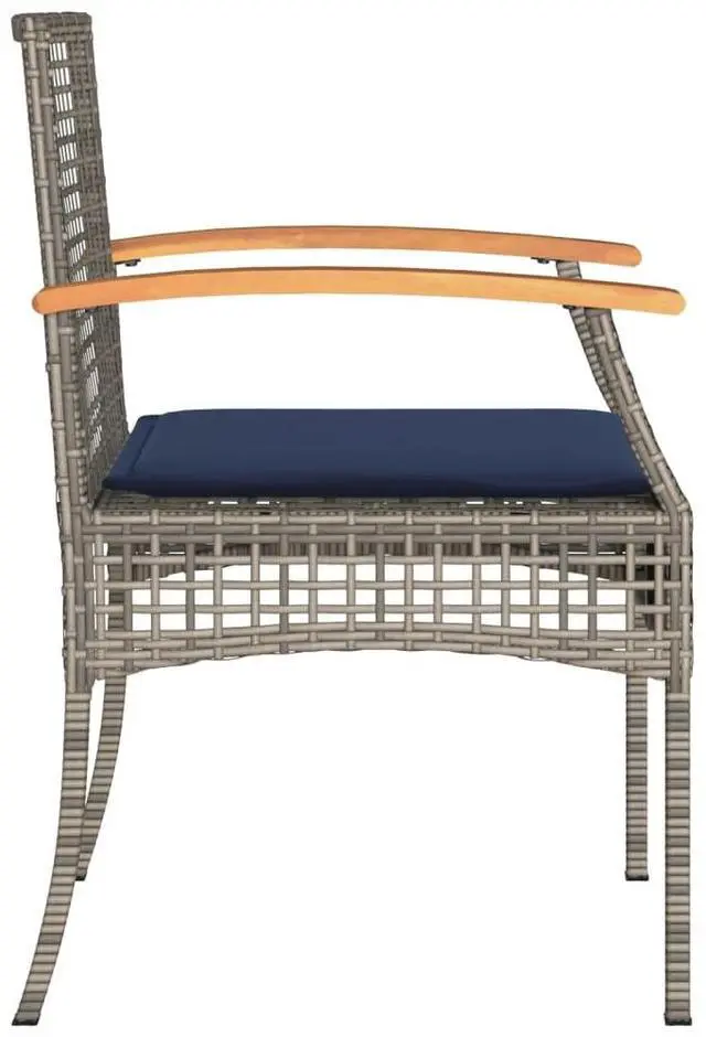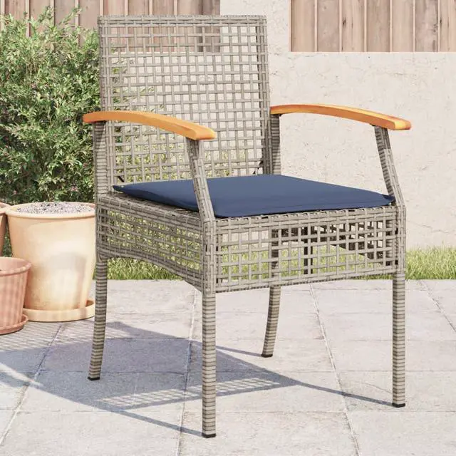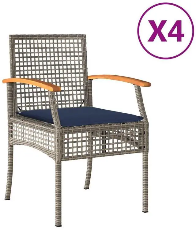 vidaXL Patio Chairs with Cushions Outdoor 4 Pcs Gray Poly Rattan Acacia Wood
