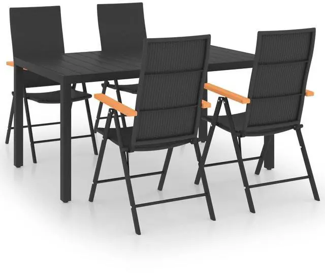 This outdoor dining set brings together practicality and flair, perfect for family meals and gatherings. With a sleek look and smart design, this 5-piece set combines black and brown tones, creating a welcoming space for casual dining and entertaining.
