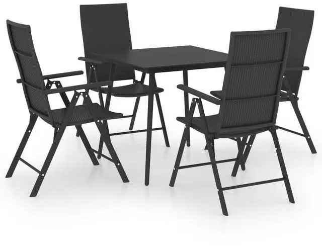 This 5-Piece Outdoor Dining Set is designed to make your outdoor meals more enjoyable. With a sleek and modern look, it features a strong metal frame combined with a stylish rattan finish that adds character to any garden, patio, or terrace. The table and chairs not only look good but are also functional, allowing you to enjoy meals al fresco with friends and family in a comfy setup.