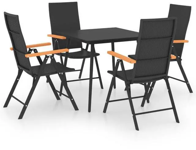 This 5-piece garden dining set is a great choice for those who love eating outdoors. It looks fantastic on your balcony, patio, or terrace, and fits right into any garden, adding a touch of elegance with its black and brown color scheme.
