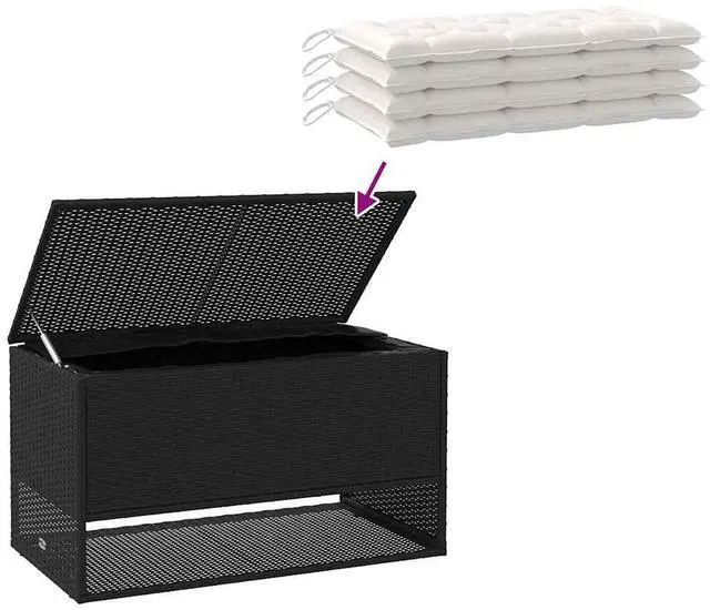 This Outdoor Cushion Box is a must-have storage solution made for outdoor areas, blending function and style. Its sleek black look, crafted from high-quality PE Rattan and tough powder-coated steel, makes it a fab addition to gardens, patios, and balconies perfect for any home.
