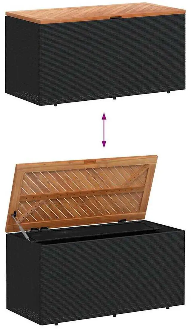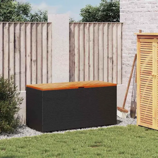 This modern garden storage box is spot on for style and use in outdoor areas. With a weather-resistant poly rattan finish, it's a great way to keep your garden cushions, pillows, and blankets all neat and tidy while looking good.