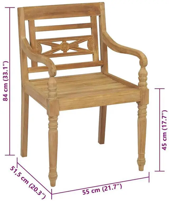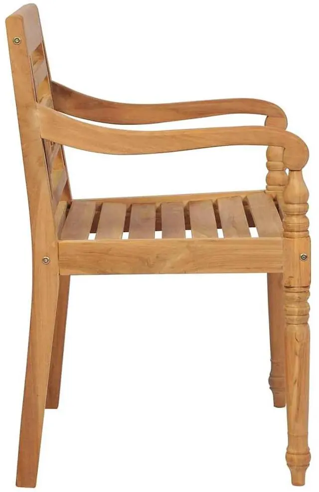 Sturdy Construction: Made from solid, kiln-dried teak wood, these chairs are built to last. The solid wood supports a significant weight and gets better with age, gaining a unique character over time.