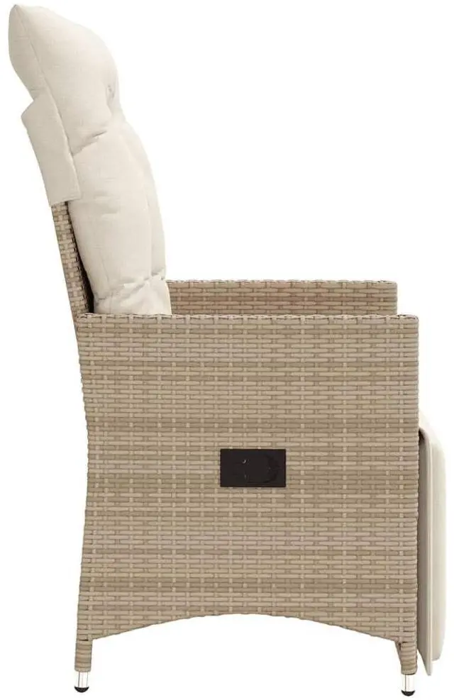 This pair of reclining garden chairs is designed for ultimate relaxation. They're perfect for outdoor spots like patios and gardens. Made from sturdy poly rattan and with soft cushions, these chairs let you chill out while enjoying the lovely outdoors. Their sleek beige finish adds a nice touch to any outdoor area, making them ideal for family get-togethers or a peaceful read in the sunshine.