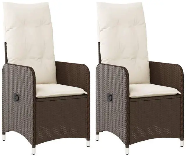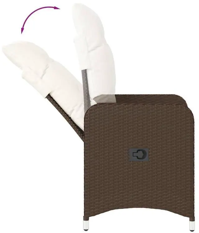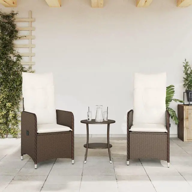 This set of reclining garden chairs adds a bit of comfort and style to any outdoor space, perfect for kicking back on your balcony, patio, or in the backyard. With a sleek, modern design and a rich brown poly rattan weave, these chairs enhance your space while giving you a comfy spot to relax after a long day.