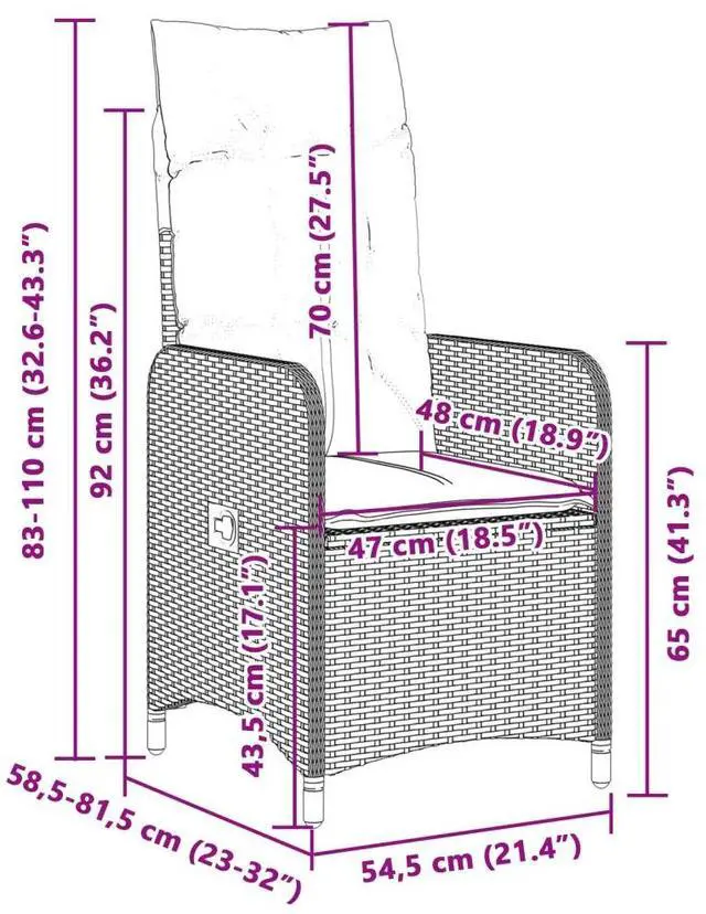 Delivery Contains: 2 Reclining garden chairs, 2 Back cushions, 2 Seat cushions