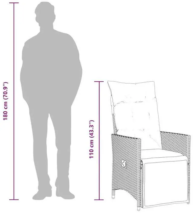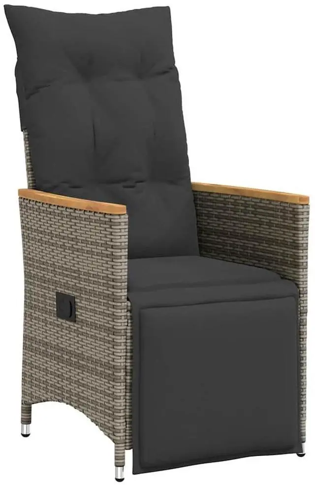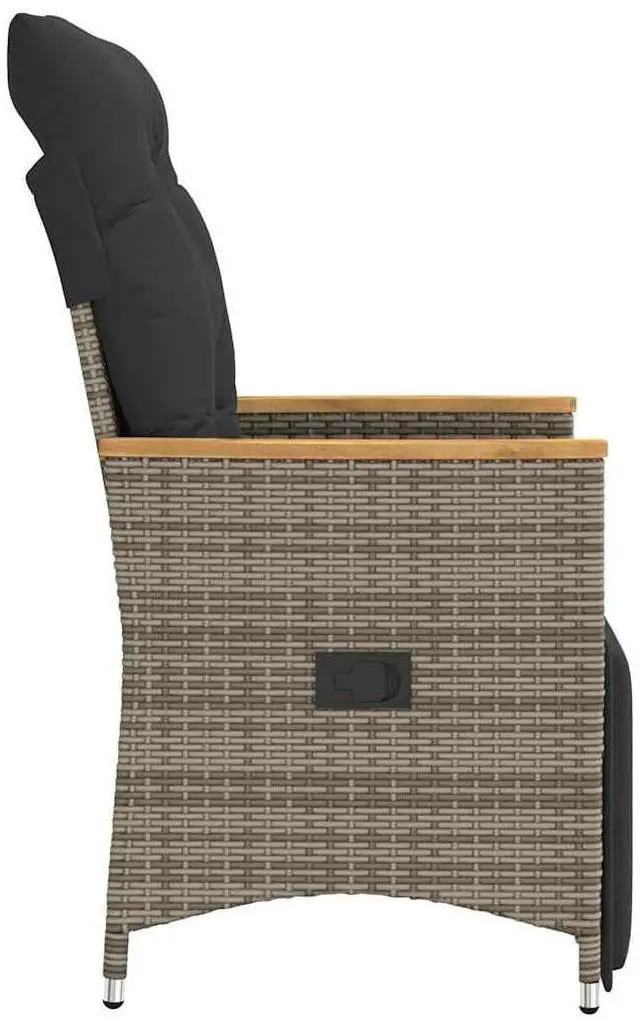 This recliner chair set offers a stylish approach to outdoor chilling, creating a comfy spot for soaking up the sun on your balcony or patio. Made using a mix of poly rattan and a strong powder-coated steel frame, these trendy chairs promise comfort and stability, making your outdoor spaces look fab.