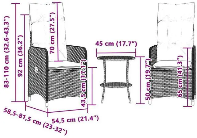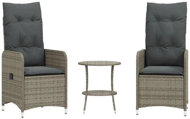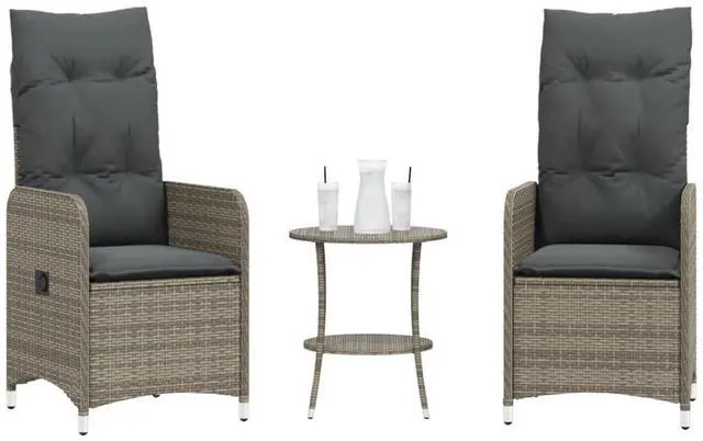 This modern reclining garden chair set is just what you need for chilling outdoors, elevating any patio or garden. With its stylish gray finish and flexible design, it includes two reclining chairs and a chic garden table, creating a comfy spot for family fun or peaceful moments outside.