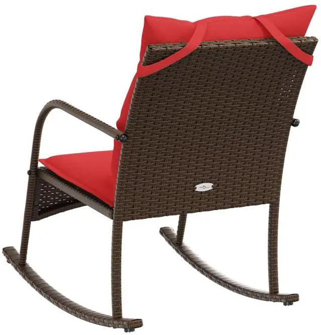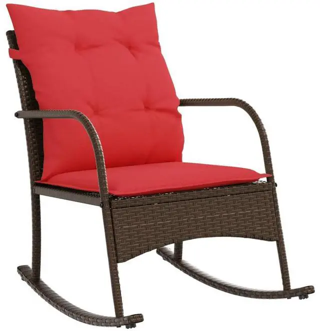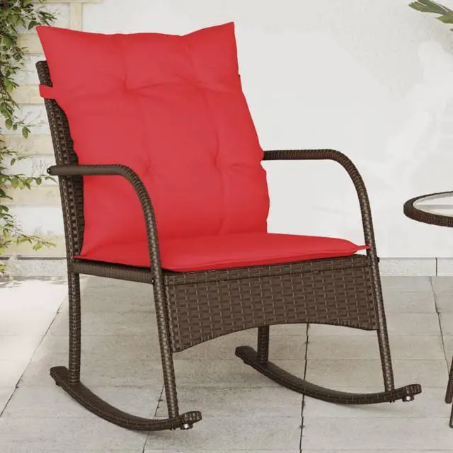 This outdoor rocking chair merges style and comfort, making it a perfect fit for any balcony or garden area. With its eye-catching design, featuring brown poly rattan and soft red cushions, it not only looks trendy but also provides a comfy place to enjoy outdoor time.