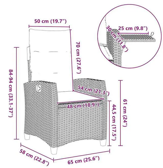 This Reclining Garden Chair is a fab mix of style and practicality, ideal for lounging outside. Made from synthetic poly rattan and a sturdy powder-coated steel frame, its designed to make your chill time better while looking great on your balcony or in your garden.