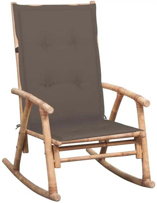 This lovely rocking chair mixes practicality with stylish vibes, perfect for chill time. With its fab natural bamboo build and soft taupe cushions, its a great addition to any seating area, giving you a warm, inviting space to relax.