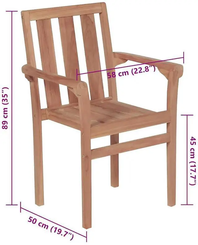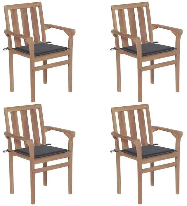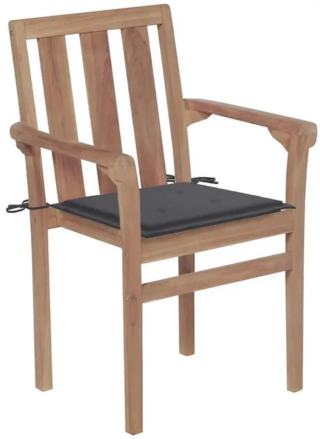 This set of stackable outdoor dining chairs is all about comfort and style, making it a perfect addition to your garden, terrace, or balcony. Theyre made from solid teak wood, known for its toughness and good looks, and have a sleek anthracite finish that fits right into any outdoor vibe, letting you and your friends dine in comfort and style.