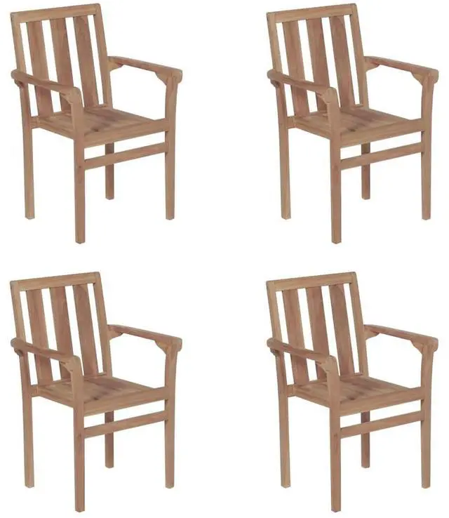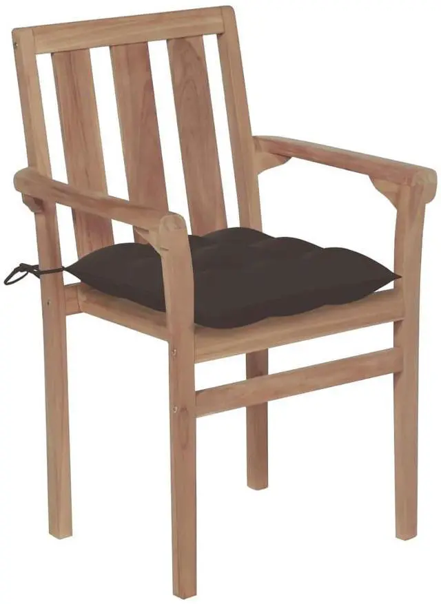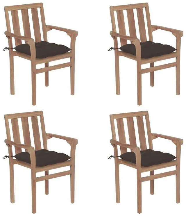 This set of 4 stackable patio chairs is the perfect blend of style and functionality, making them great for outdoor dining or just chilling out. Made from solid teak wood, they add a classic touch with warm brown tones, enhanced by soft taupe cushions that boost comfort and looksperfect for gardens, patios, or balconies.